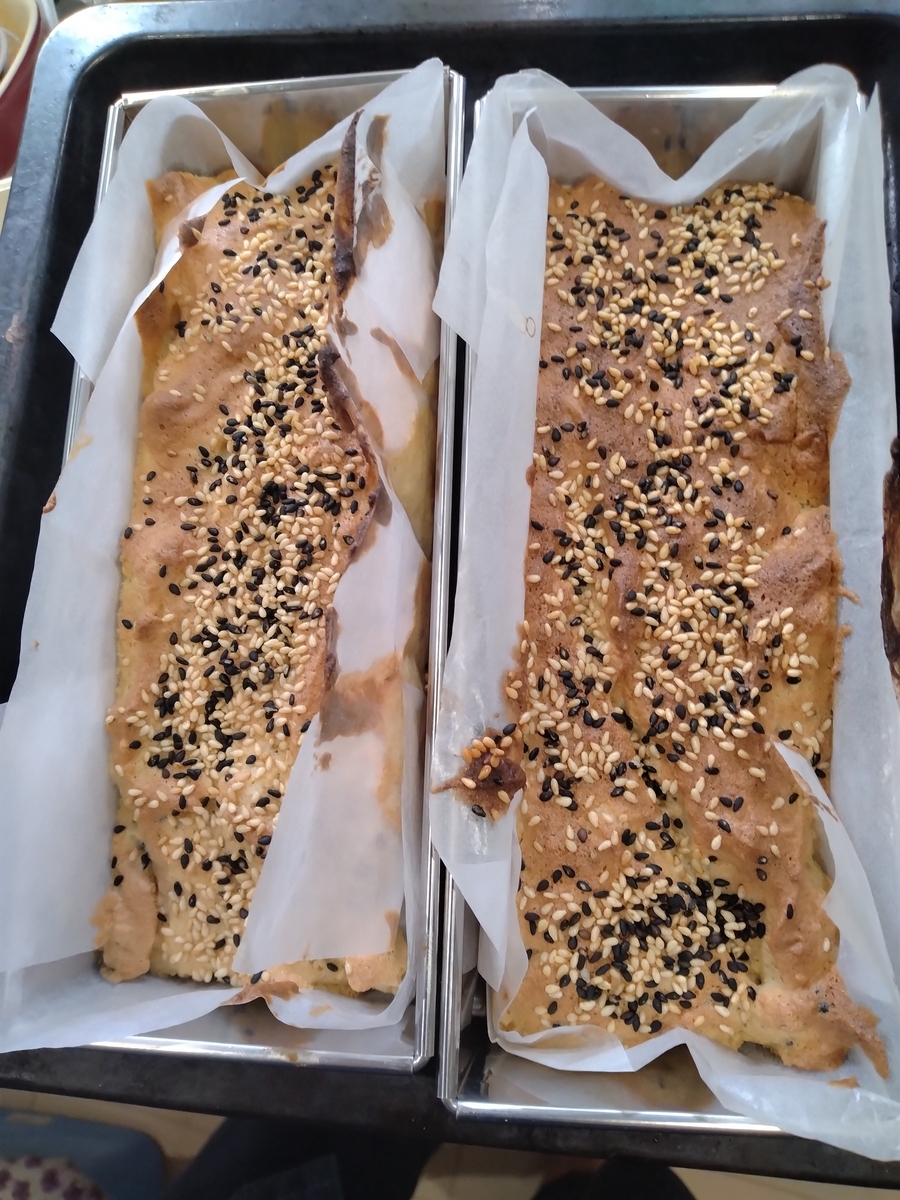 正確に言うと、パウンドケーキではなく、バターが少なかったので、サラダ油50gに変え、小麦粉も米粉に変えています。